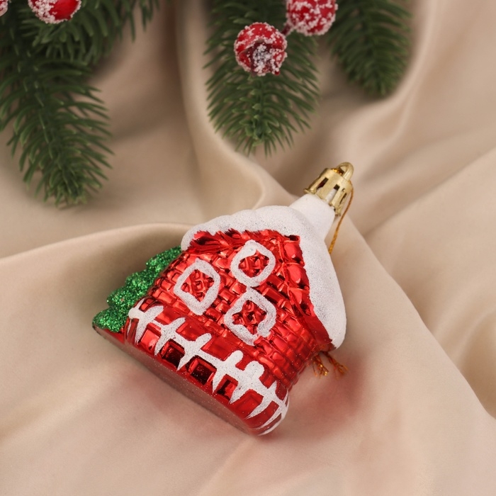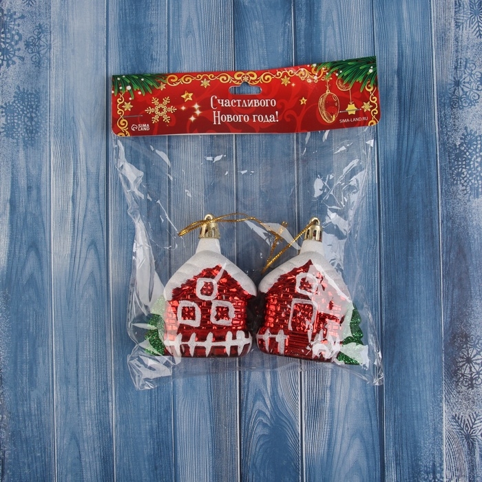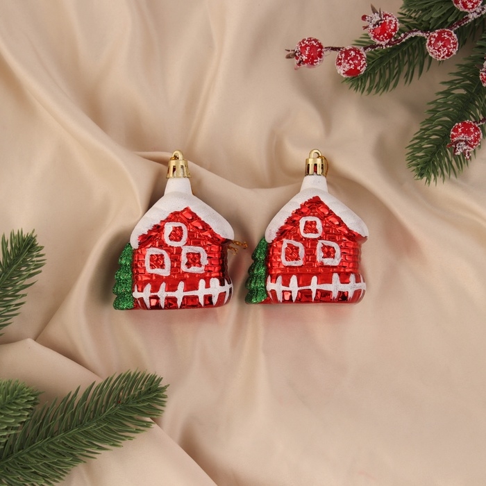 Украшение ёлочное "Домик в снегу" (набор 2 шт) 7х6 см, красный