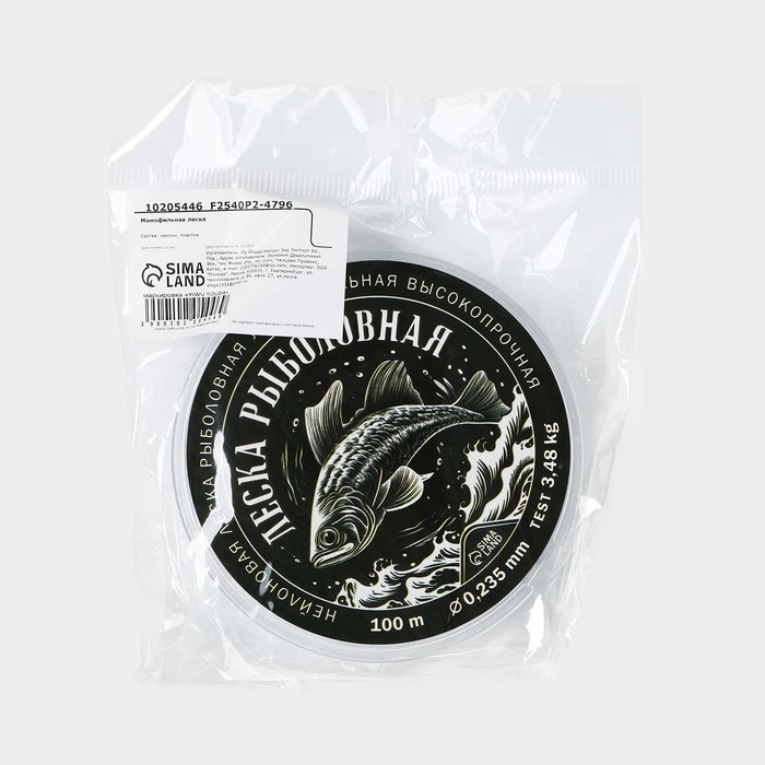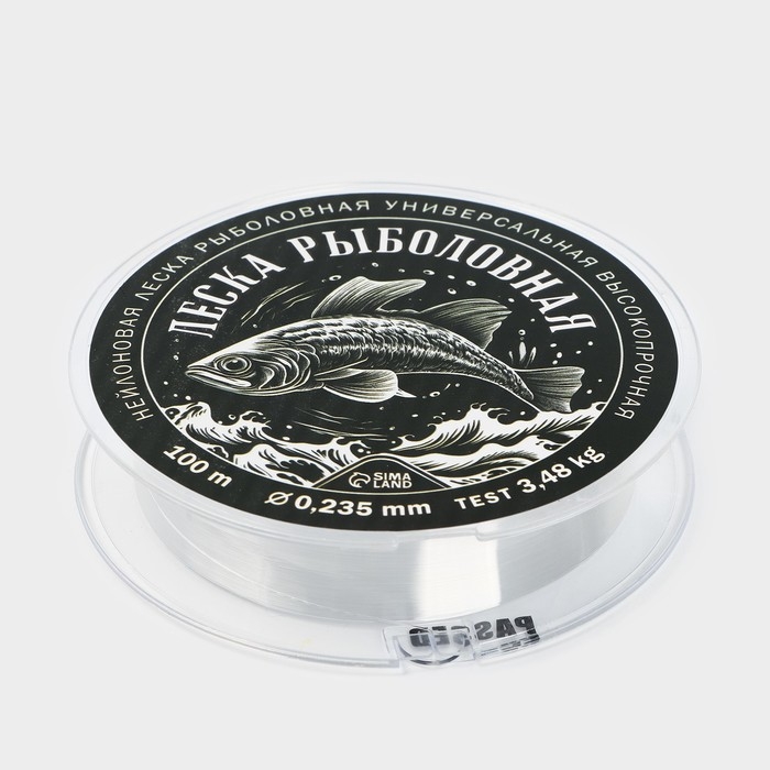 Леска монофильная «Леска рыболовная», 100 м, d=0,235 мм, разрывной вес - 3.48 кг, прозрачная