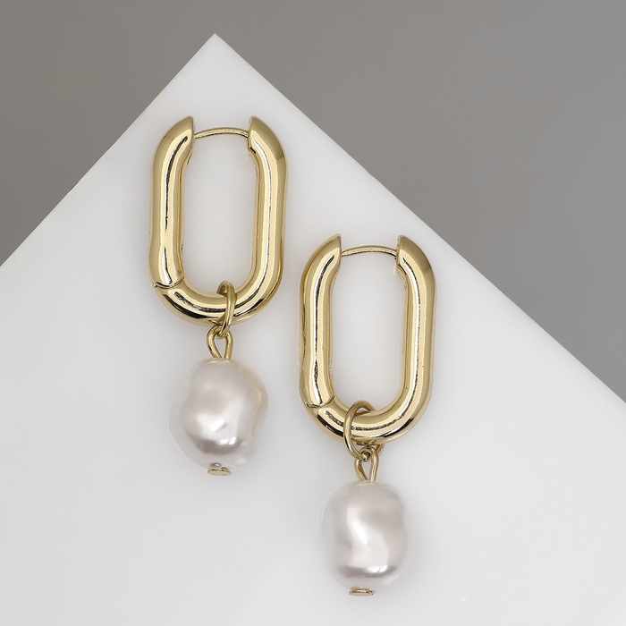 Серьги с жемчугом «Бусина» чувство нежности, цвет золото
