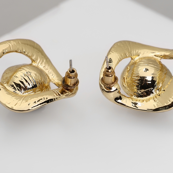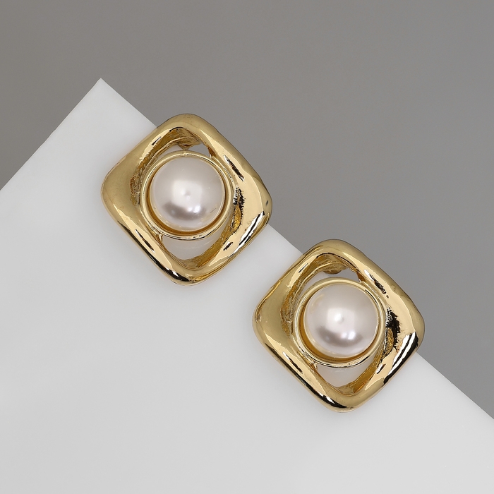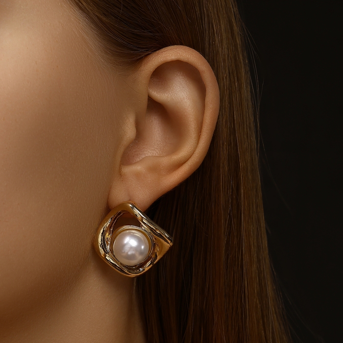 Серьги с жемчугом «Эксклюзив» мятый квадрат, цвет золото
