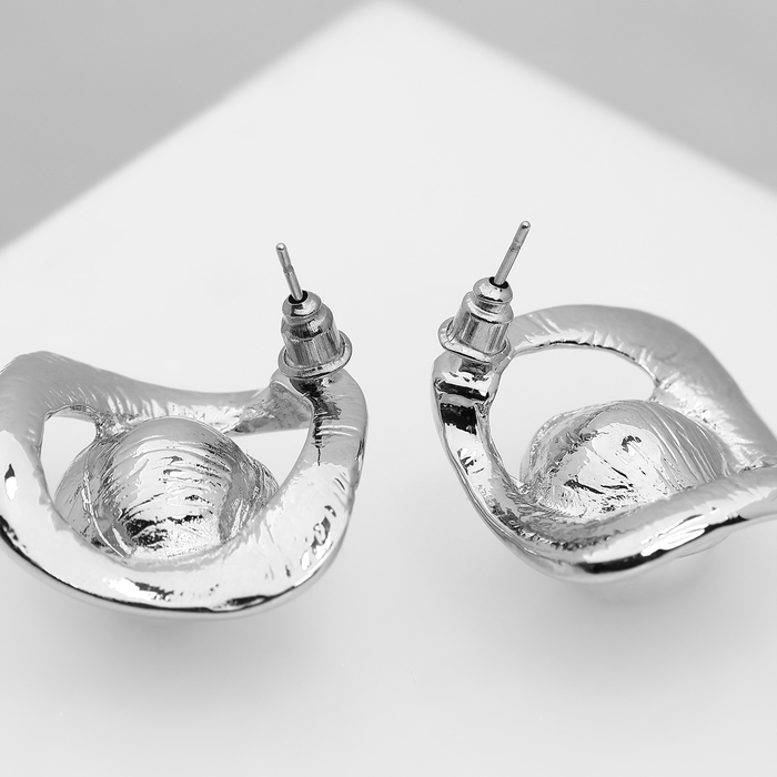 Серьги с жемчугом «Эксклюзив» мятый квадрат, цвет серебро