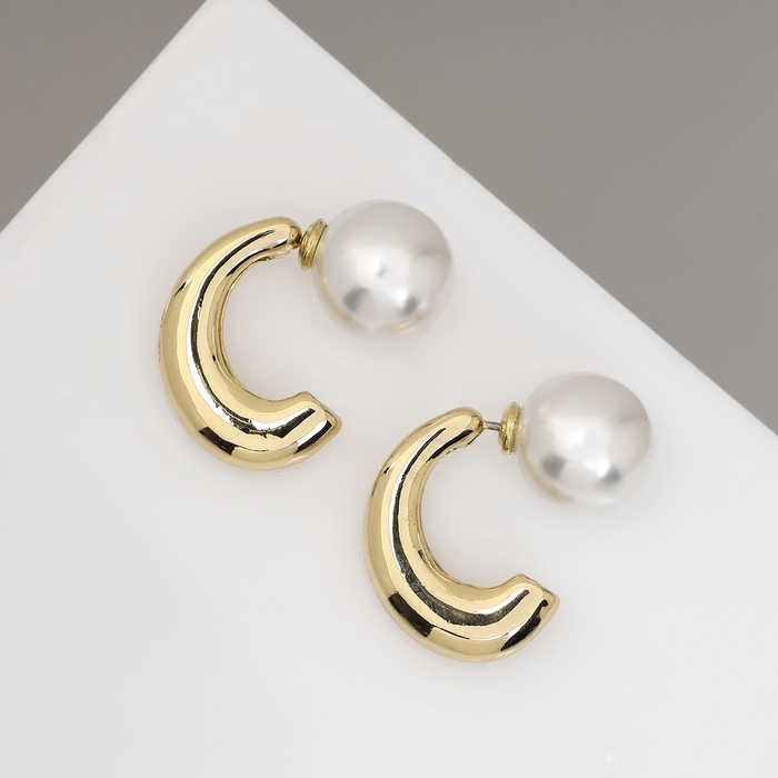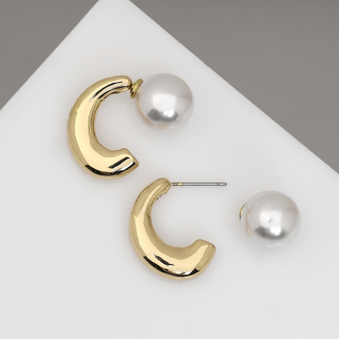 Серьги с жемчугом «Эксклюзив» полукольца, цвет золото