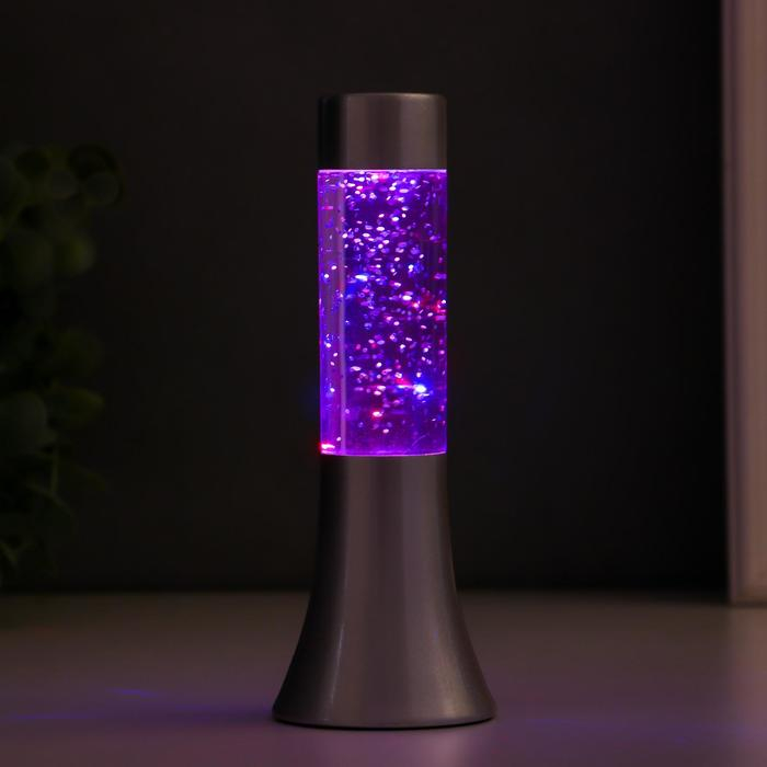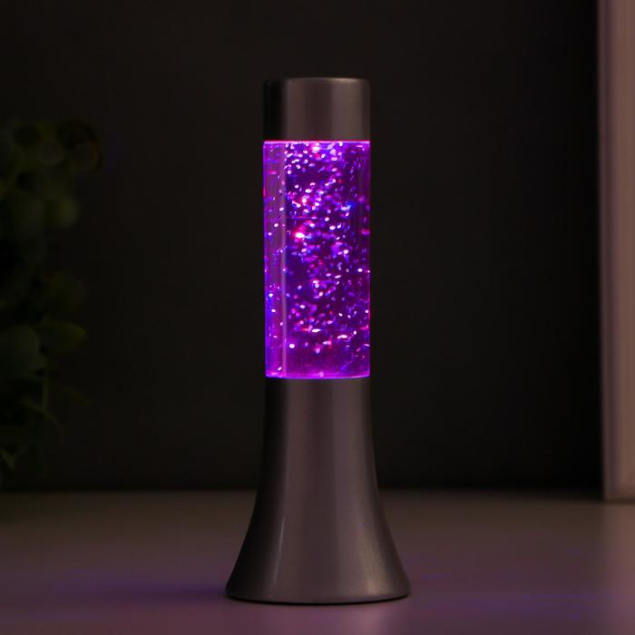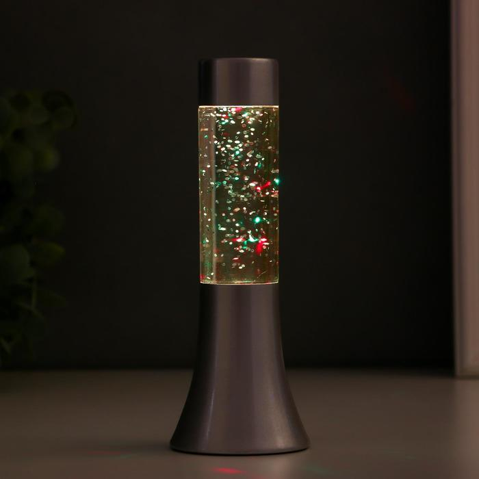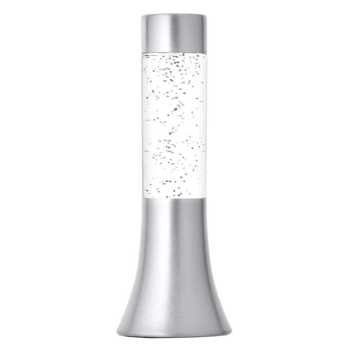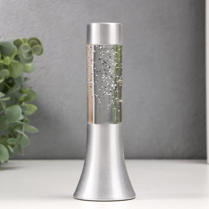 Светильник "Блеск цилиндра" LED, лава, блёстки, от батареек 3хLR44 серебро 18 см RISALUX