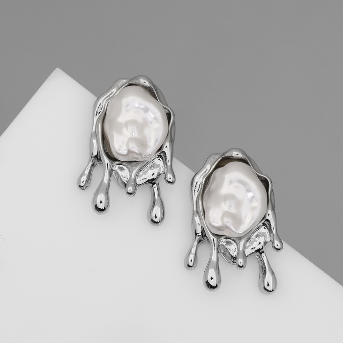 Серьги с жемчугом «Эксклюзив» таяние, цвет серебро