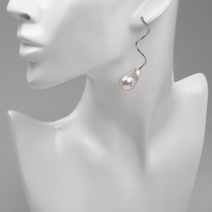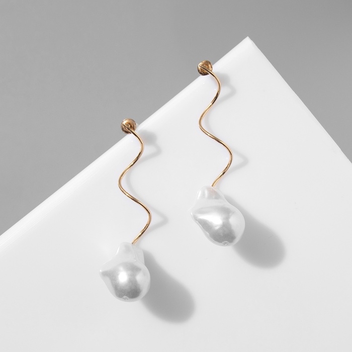 Серьги с жемчугом «Бусина» спираль, цвет золото