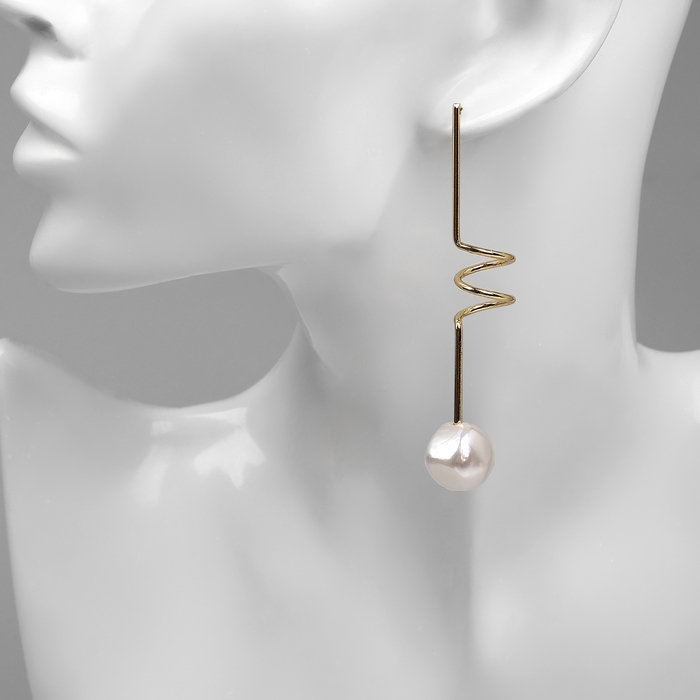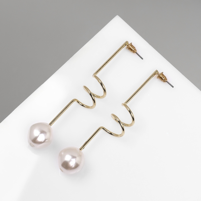 Серьги с жемчугом «Бусина» спираль мини, цвет золото