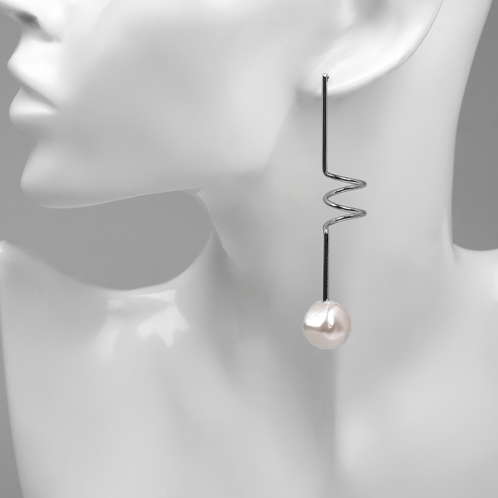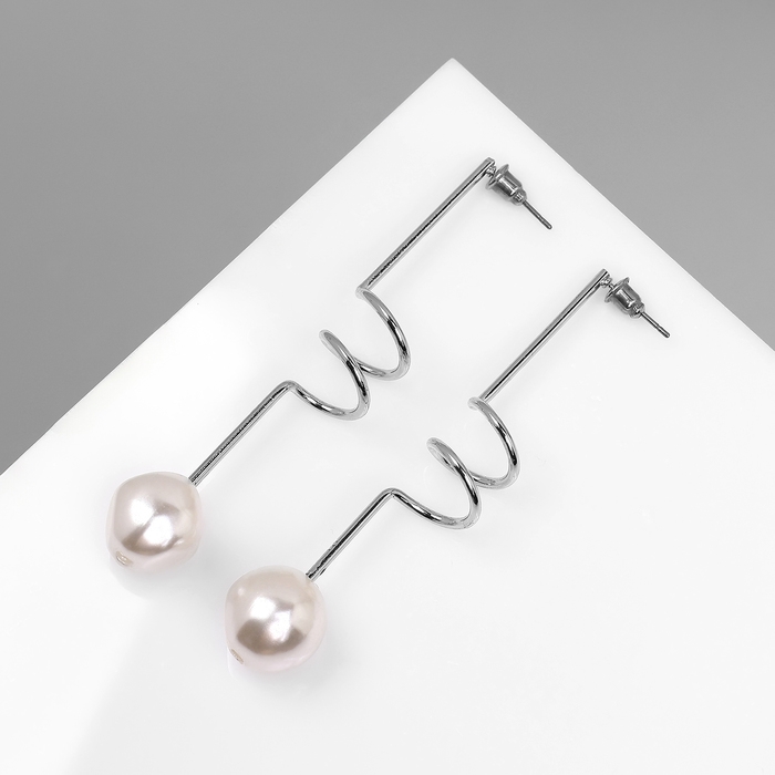 Серьги с жемчугом «Бусина» спираль мини, цвет серебро