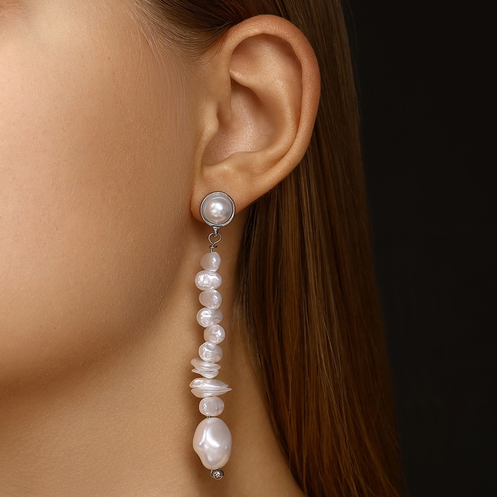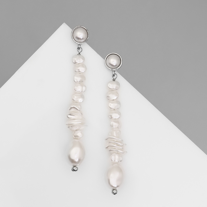 Серьги с жемчугом «Бусина» вершина, цвет серебро