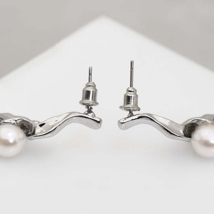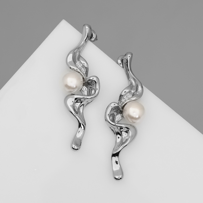 Серьги с жемчугом «Бусина» сосуд, цвет серебро