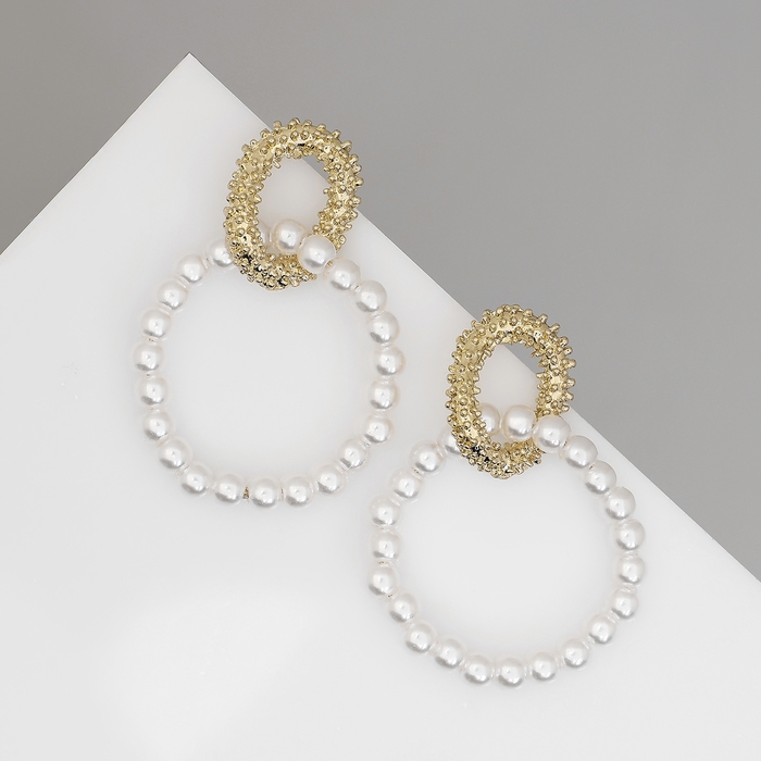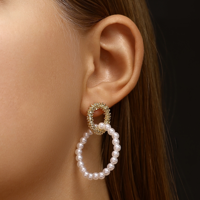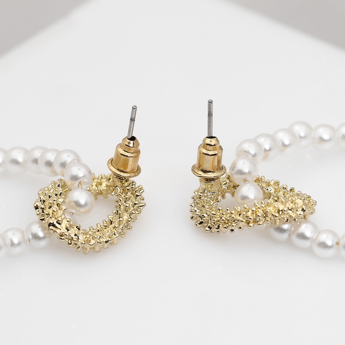 Серьги с жемчугом «Бусина» переплетение чувств, цвет золото
