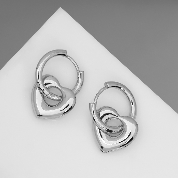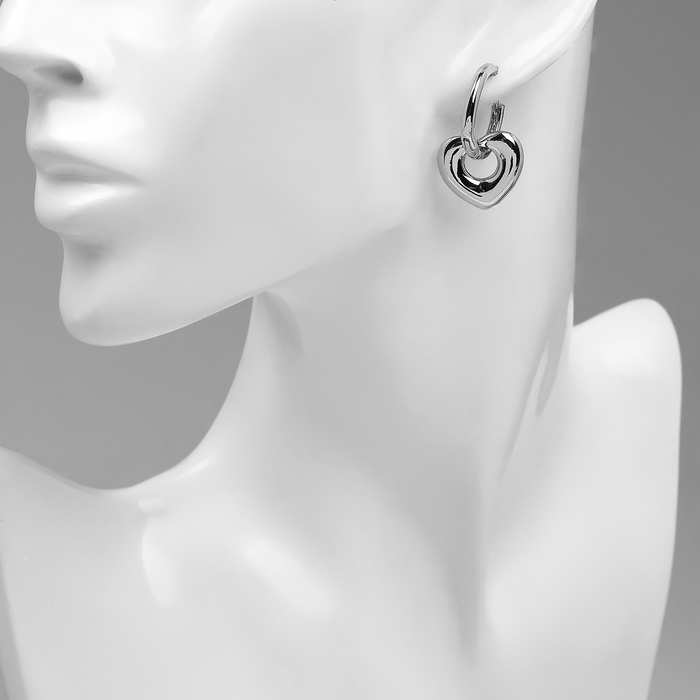 Серьги металл «Сердца» ритм, цвет серебро