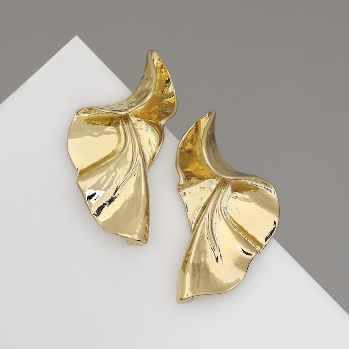 Серьги металл «Модерн» лист, искажение, цвет золото