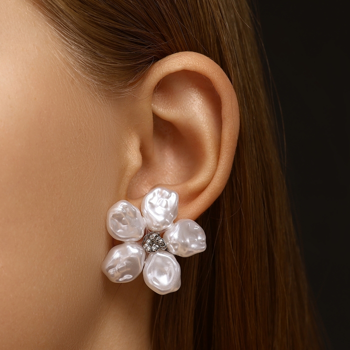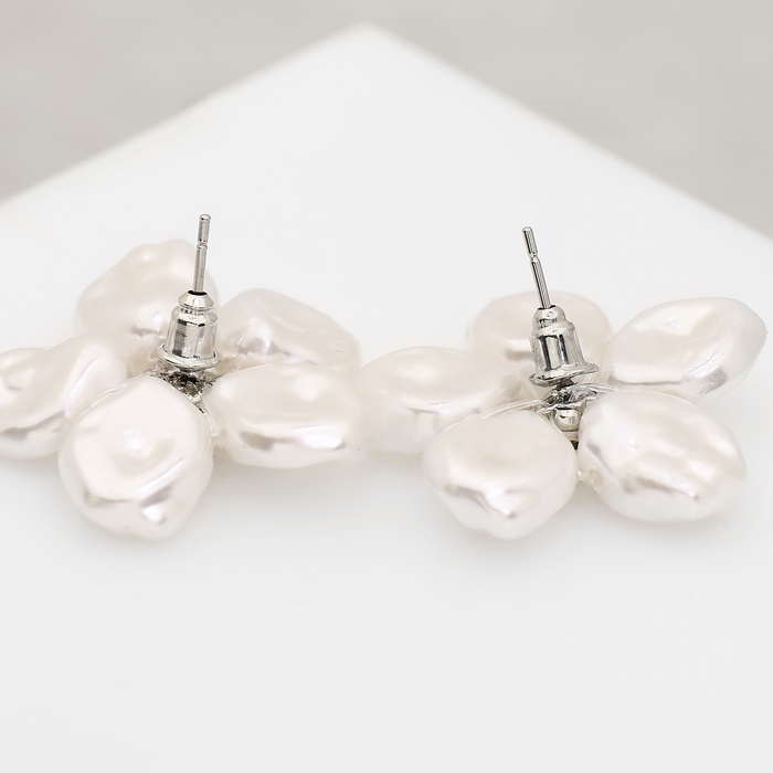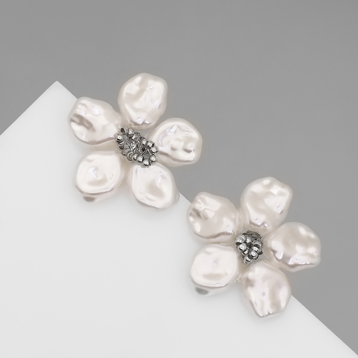 Серьги с жемчугом «Эксклюзив» цветок, цвет серебро