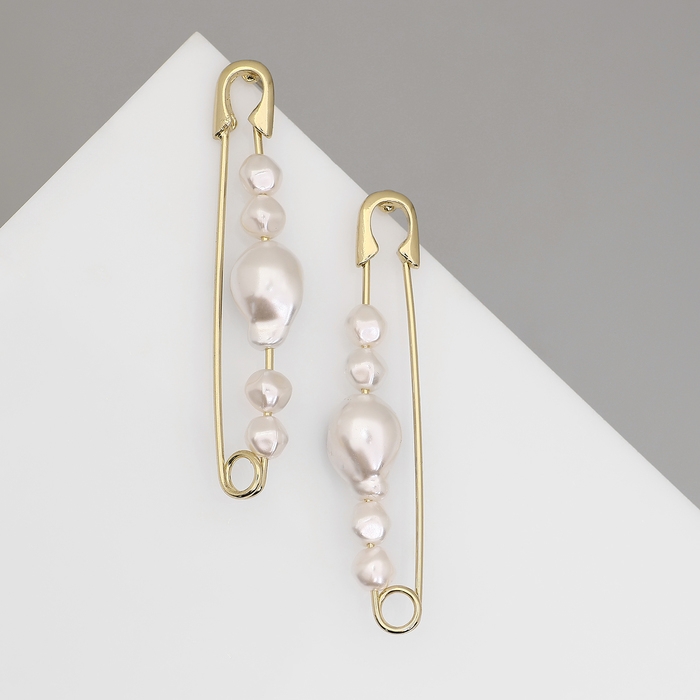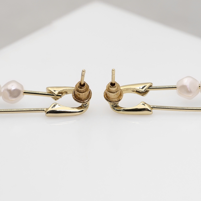 Серьги с жемчугом «Бусина» союз, булавка, цвет золото