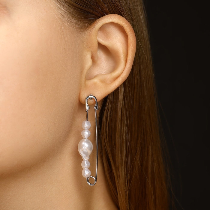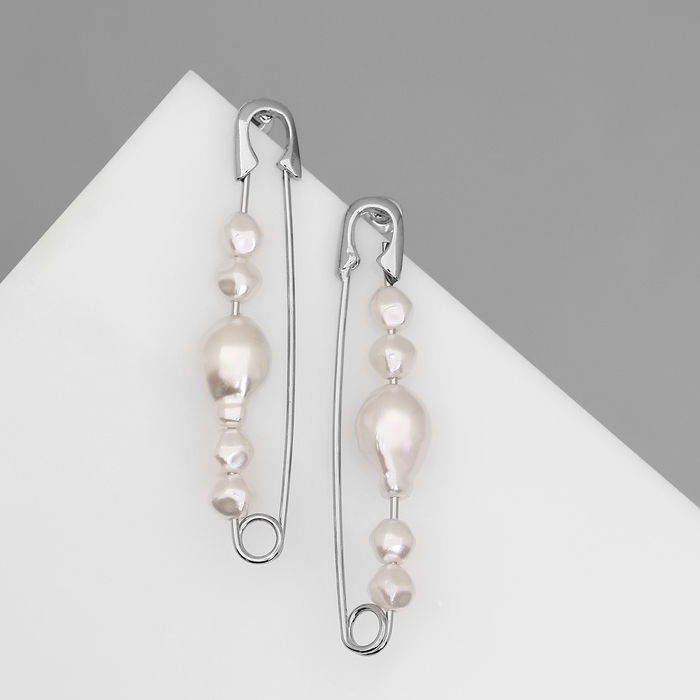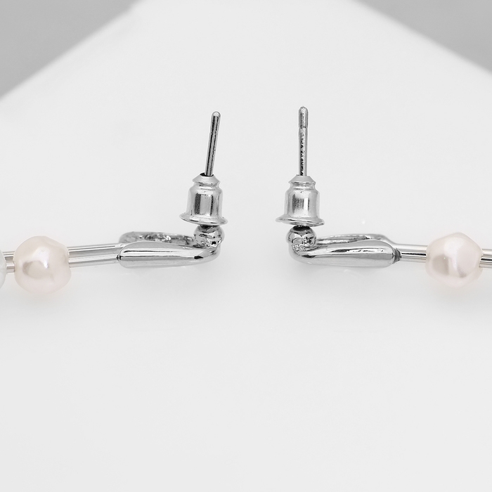 Серьги с жемчугом «Бусина» союз, булавка, цвет серебро