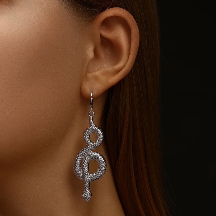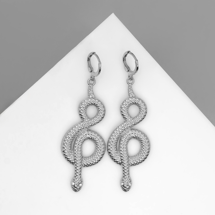 Новый год! Символ года 2025! Серьги металл «Змея» восемь, цвет белый в серебре