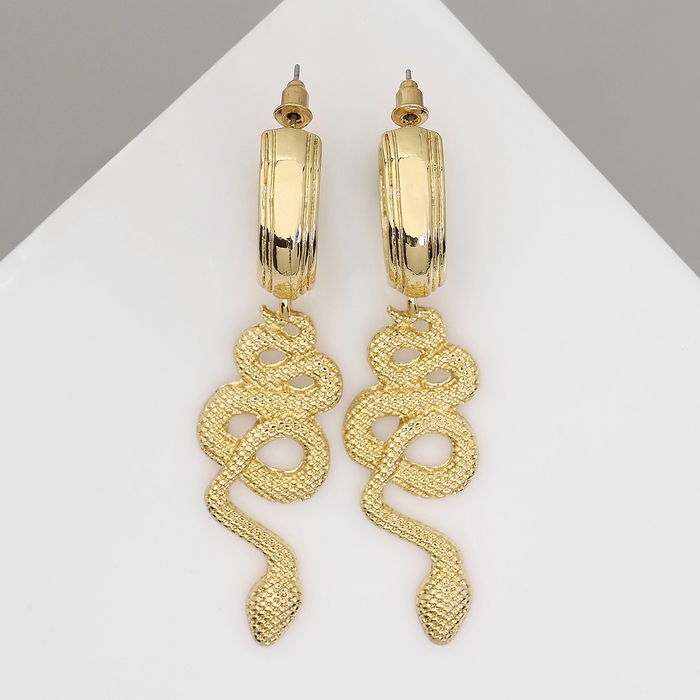 Новый год! Символ года 2025! Серьги металл «Змея» неповторимая, цвет золото