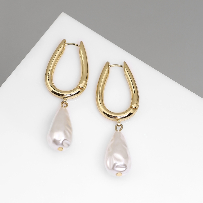 Серьги с жемчугом «Бусина» груша, цвет золото