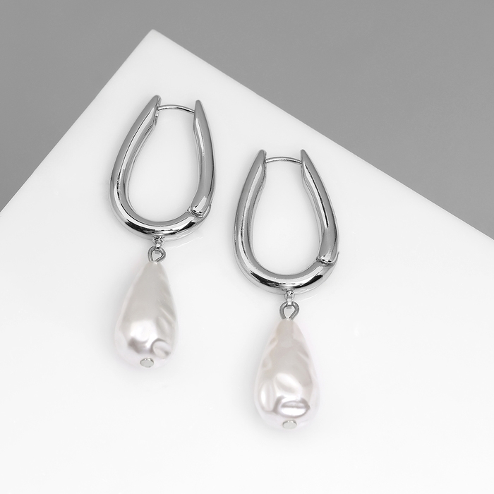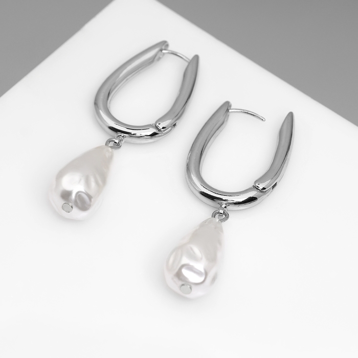 Серьги с жемчугом «Бусина» груша, цвет серебро