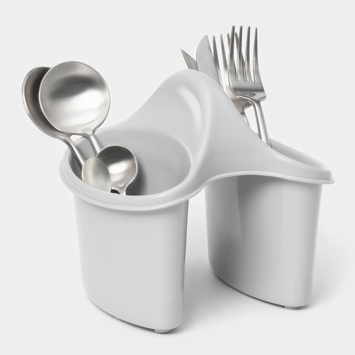Сушилка для столовых приборов, 2 отделения, 17×15,2×16 см, цвет серый