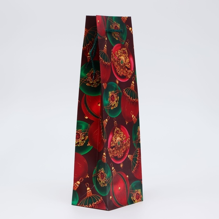 Новый год. Пакет подарочный новогодний под бутылку, упаковка "Шары", 12 х 36 х 8,5 см.
