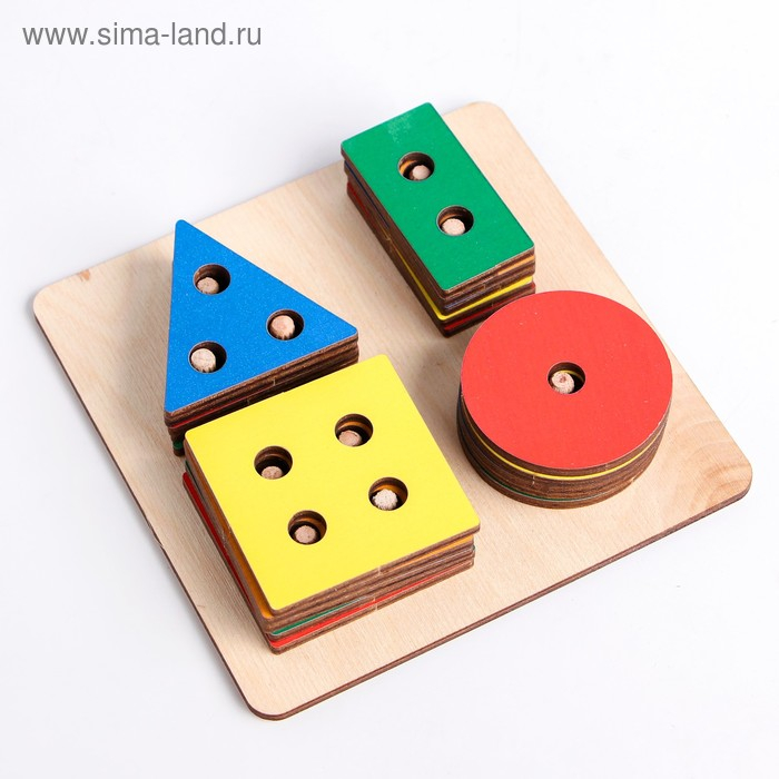 Геоборд «Геометрия» — одна из немногих дидактических игрушек, дающих возможность формировать у ребёнка комплекс необходимых интеллектуальных умений. Материал предназначен для нанизывания геометрических фигур на штырьки.