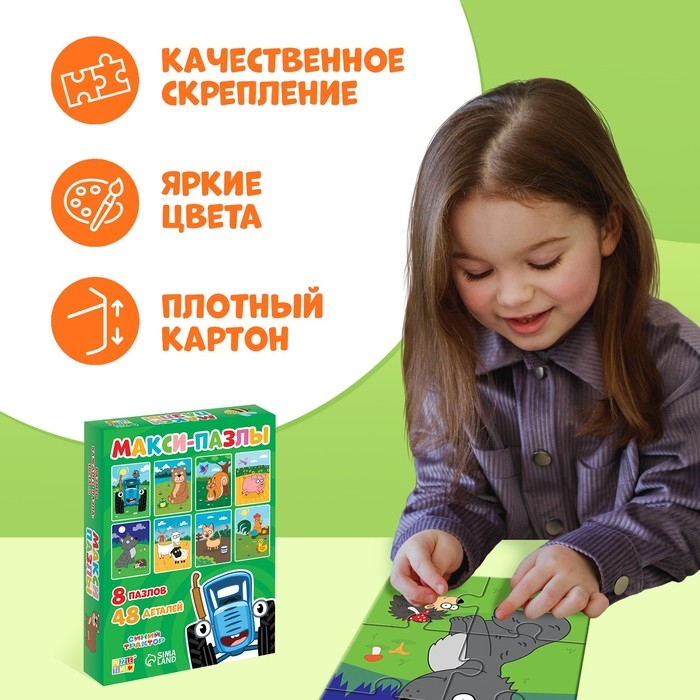 Макси-пазлы 8 в 1 «Синий трактор и его друзья», 8 пазлов по 6 деталей