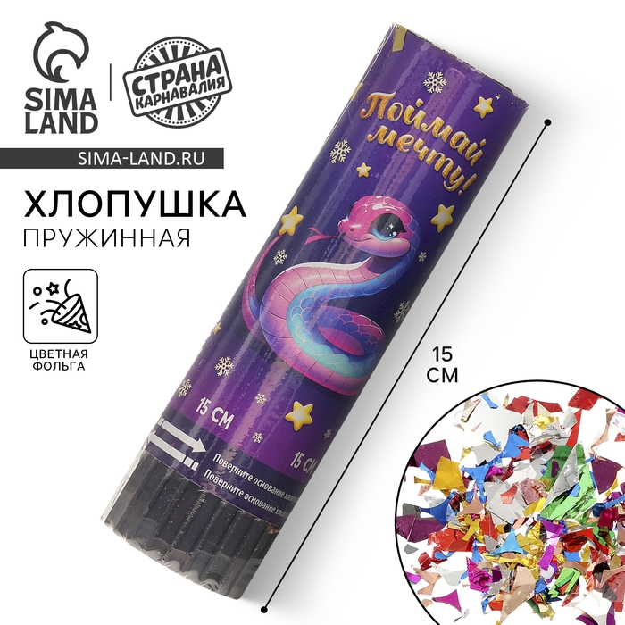 Новогодняя хлопушка пружинная поворотная «Поймай мечту» змейка 15 см