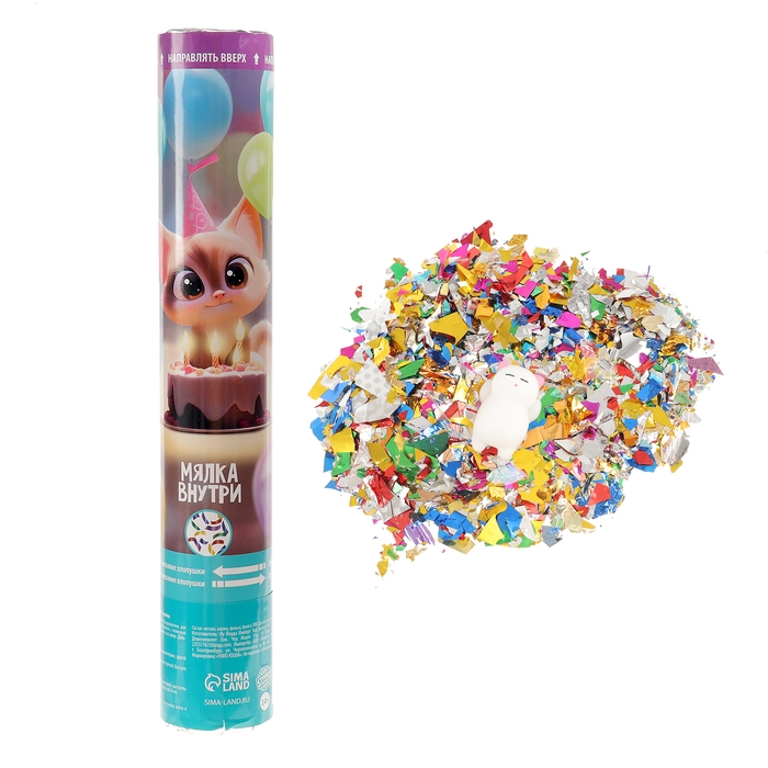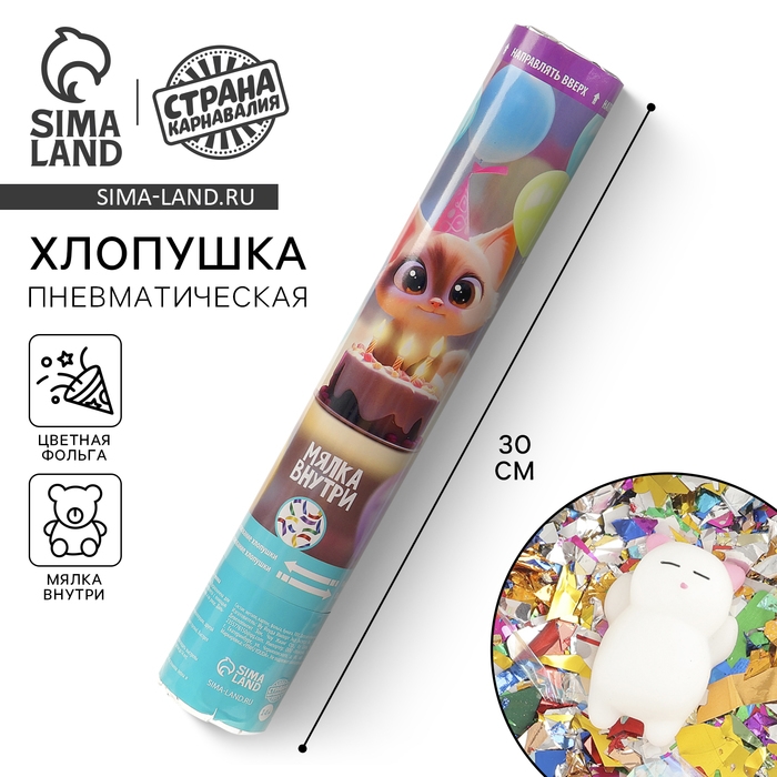 Хлопушка пневматическая "Котик" 30см серпантин+ мялка