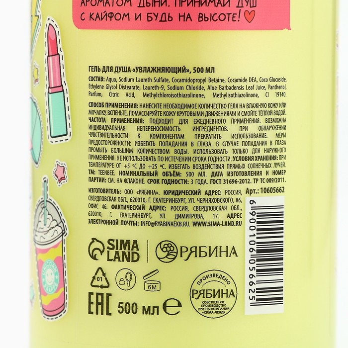 Гель для душа, увлажнение, 500 мл, аромат дыни, TeenBee