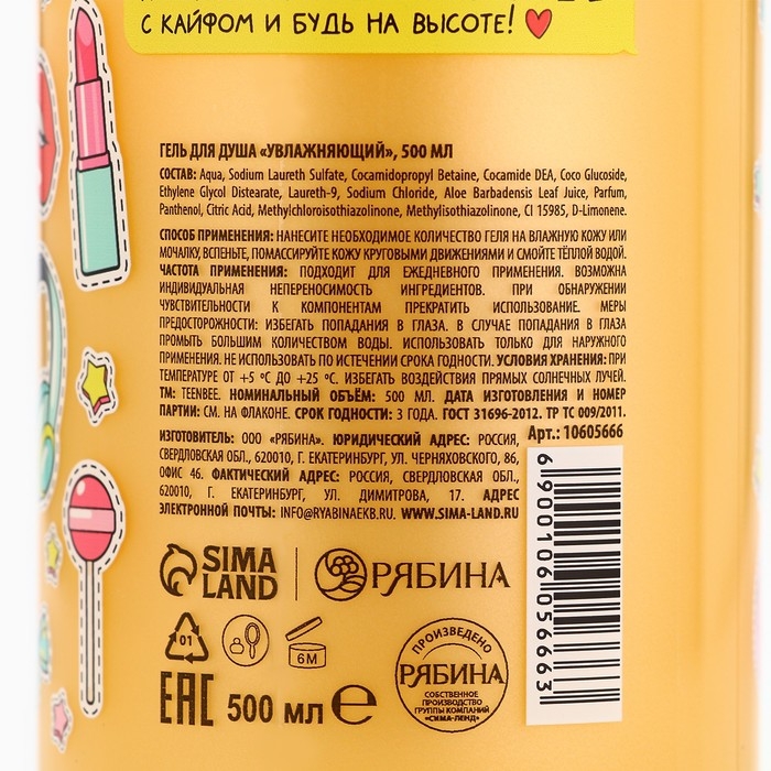 Гель для душа, увлажнение, 500 мл, аромат карамели, TeenBee