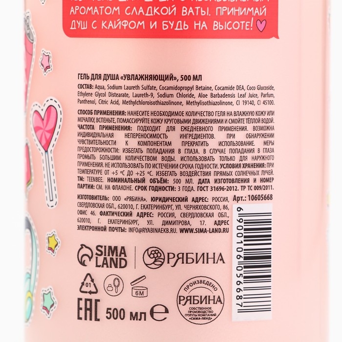 Гель для душа, увлажнение, 500 мл, аромат сладкой ваты, TeenBee