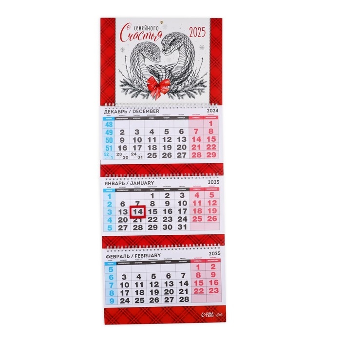 Календарь 2025 настенный, квартальный «Новый год: Семейного счастья», 29,5 х 73 см, новогодняя серия