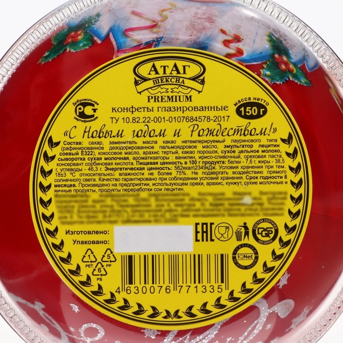 Такая упаковка превращает конфеты в идеальный новогодний и рождественский подарок. Шарик-украшение можно повесить на ёлку или использовать в качестве стильного дополнения к праздничному декору. Конфеты "С Новым Годом и с Рождеством!" прекрасно подойдут для того, чтобы порадовать друзей, коллег или близких, передав им свои искренние пожелания счастья и благополучия в новом году. Этот набор станет символом праздника, который принесет сладкие и приятные воспоминания на весь год вперед.