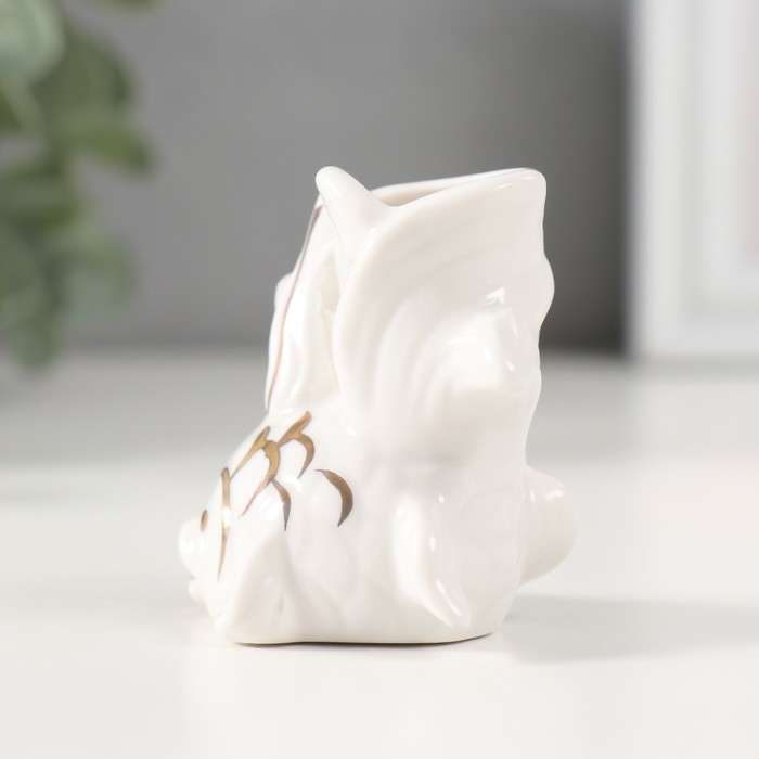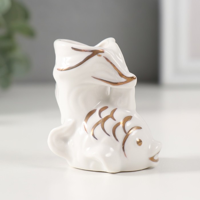 Сувенир керамика подставка д/зубочисток "Белая рыбка" с золотом 5,2х4х5,5 см