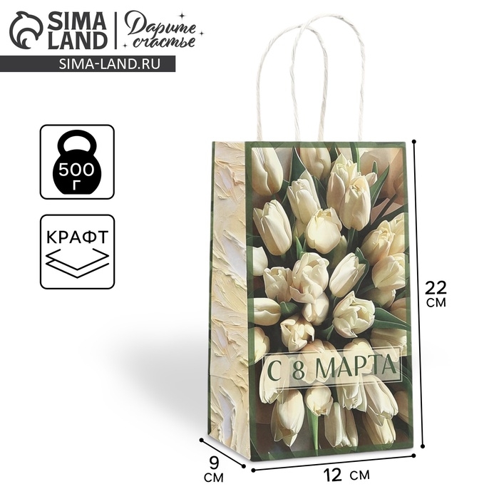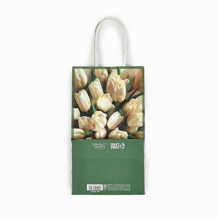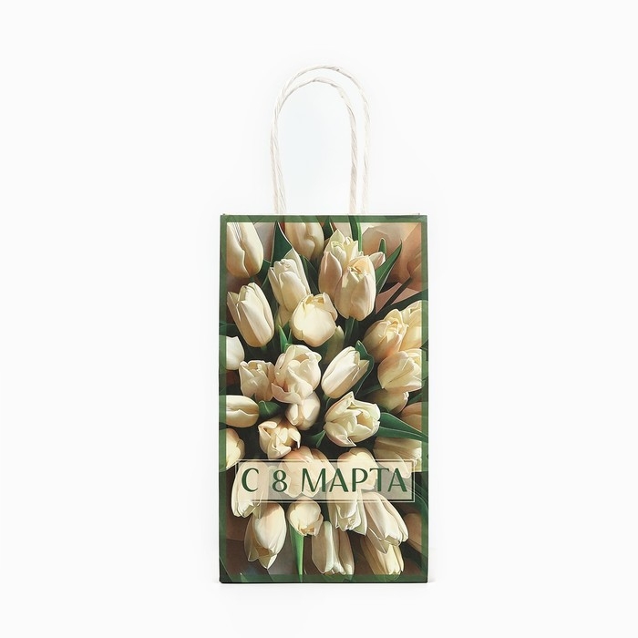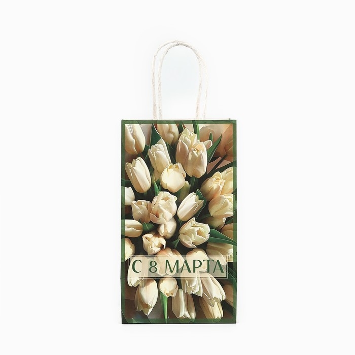 Пакет подарочный крафт «8 марта», тюльпаны 12 × 21 × 9 см