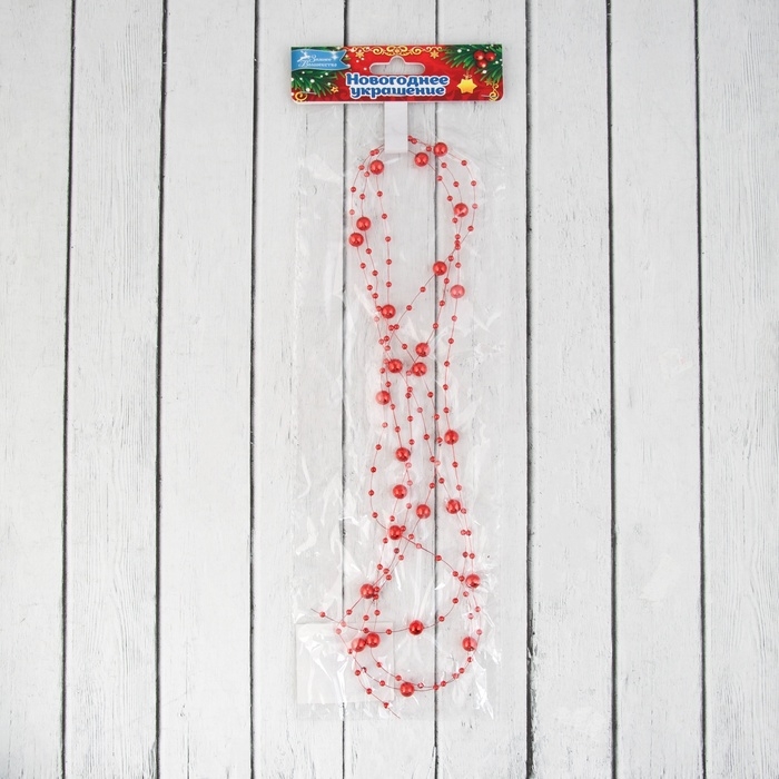 Бусы на ёлку 2 м d-7 мм "Бусины нити" красный