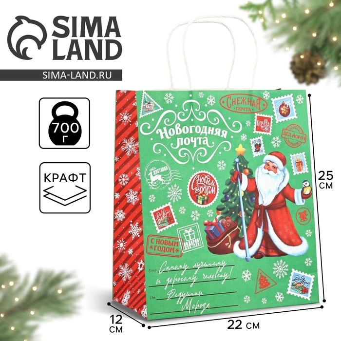 Пакет подарочный новогодний крафтовый «Волшебного нового года», 22 х 12 х 25 см , Новый год