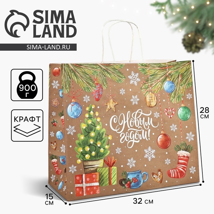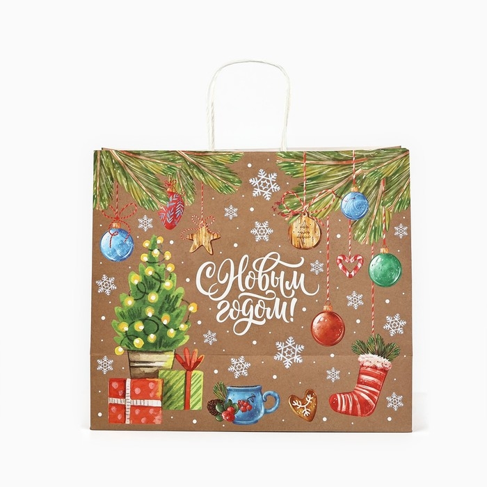 Пакет подарочный новогодний крафтовый «Весёлого нового года», 28 х 15 х 32 см , Новый год