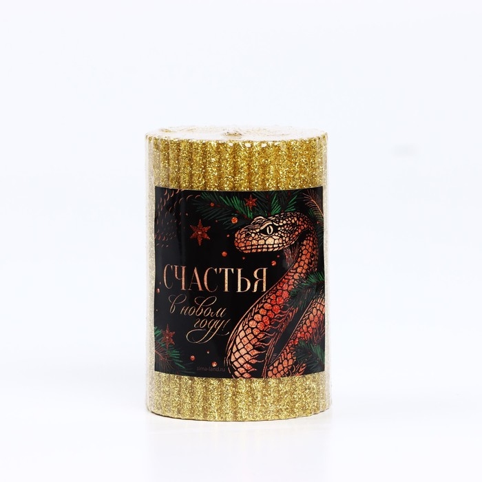 Новогодняя свеча-столбик с блестками «Новый год: Счастья», 8,5 х 6 см