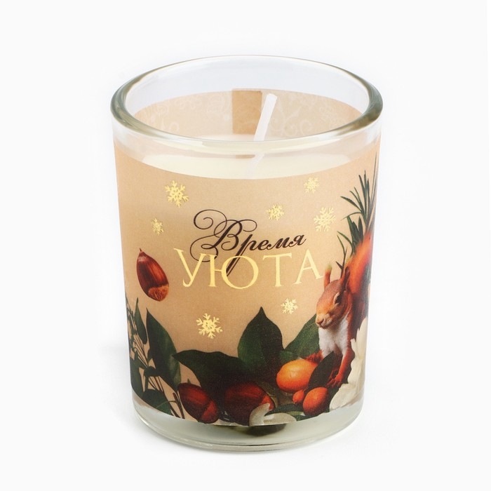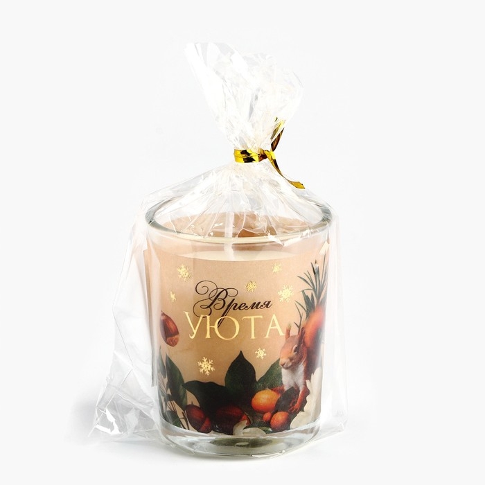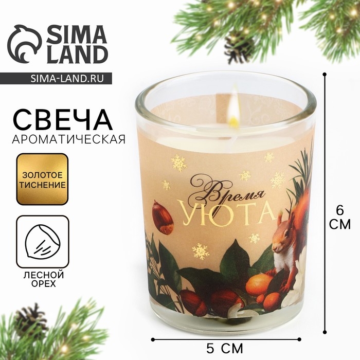 Новогодняя свеча с калькой «Новый год: Время уюта», аромат лесной орех,5х6х5 см
