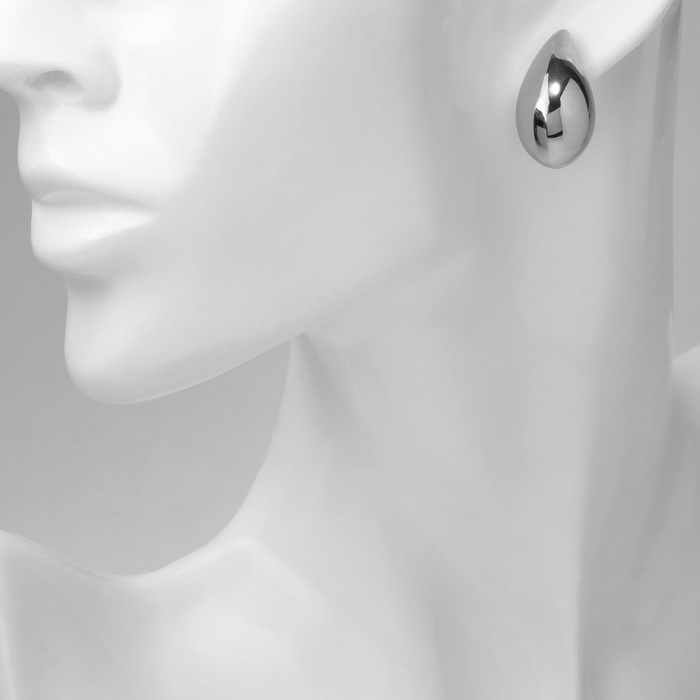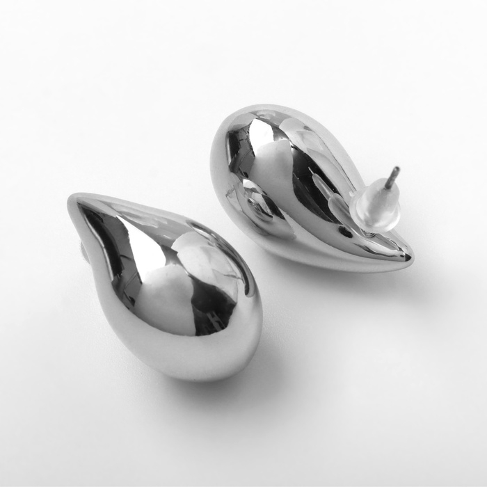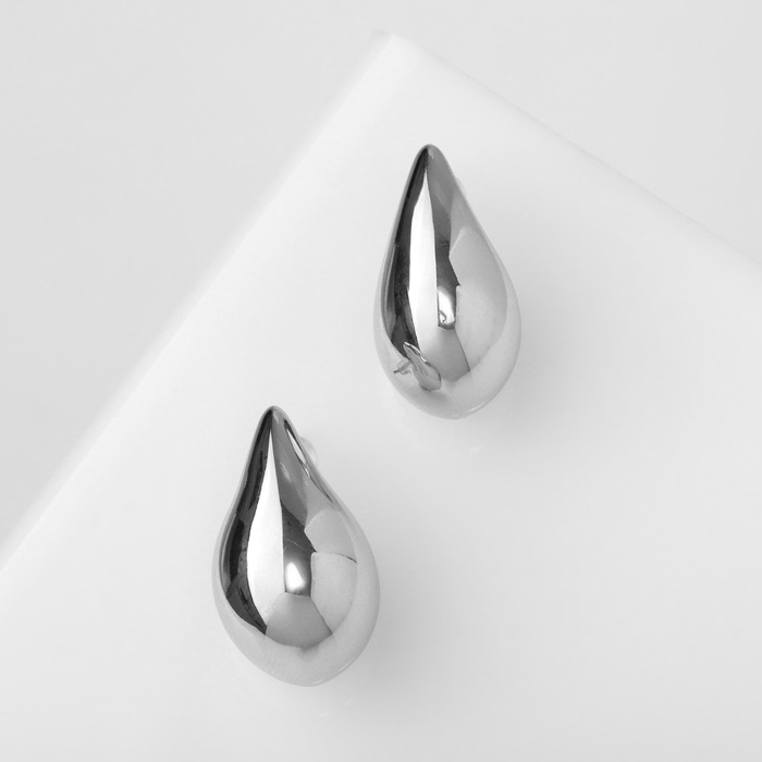 Серьги пластик «Капля» изогнутая мини, цвет серебро