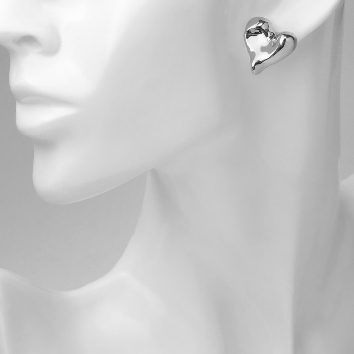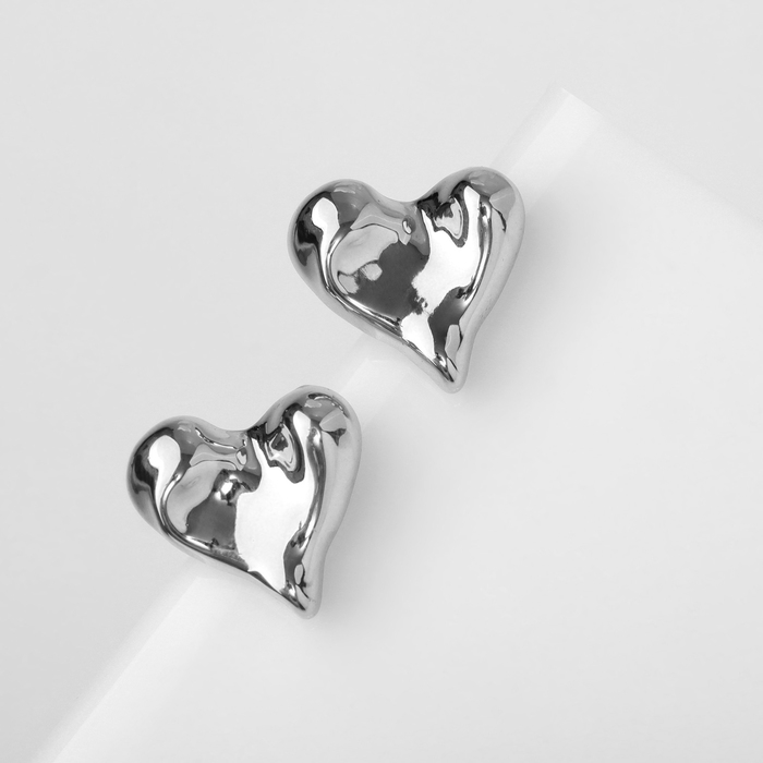 Серьги пластик «Сердца» течение, цвет серебро