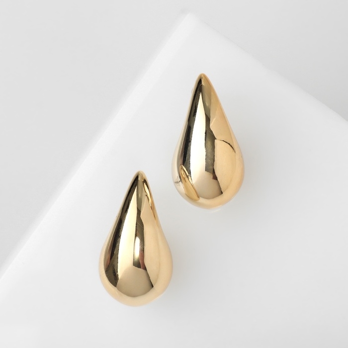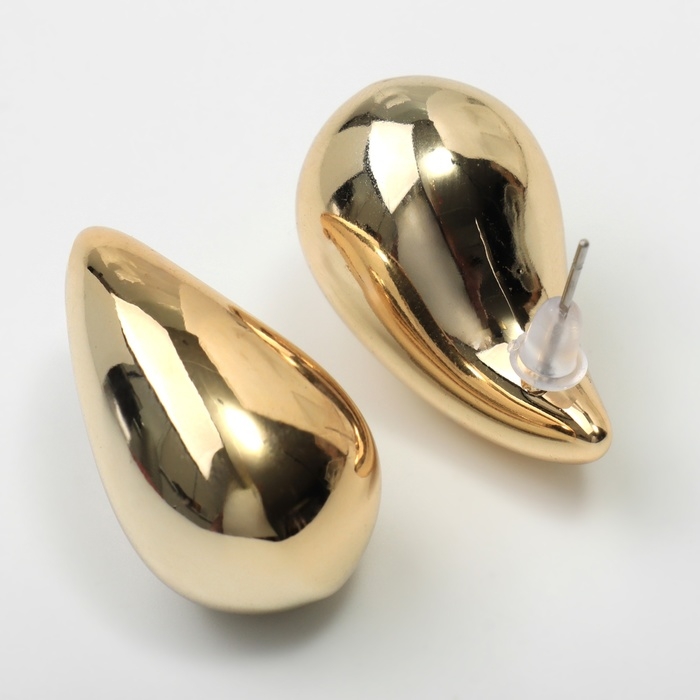 Серьги пластик «Капля» изогнутая мах, цвет золото
