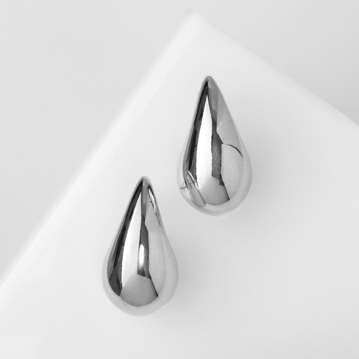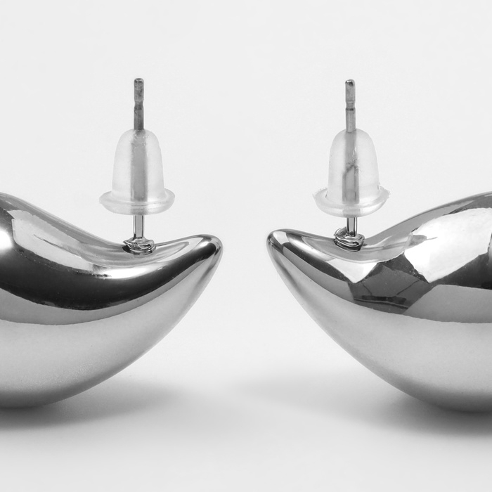 Серьги пластик «Капля» изогнутая мах, цвет серебро
