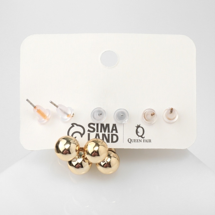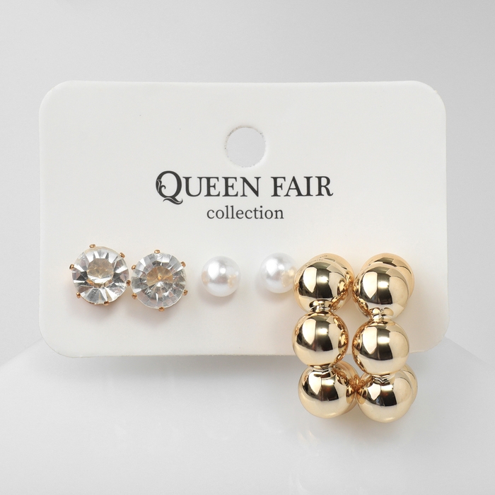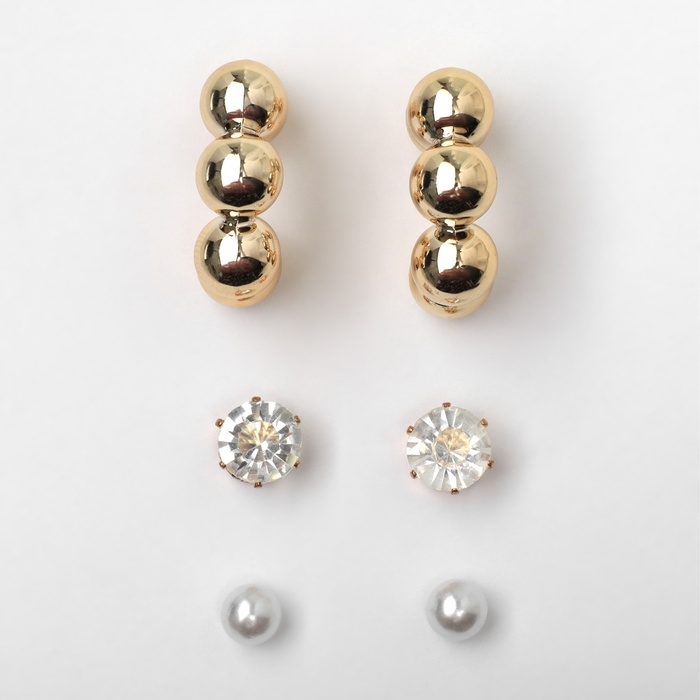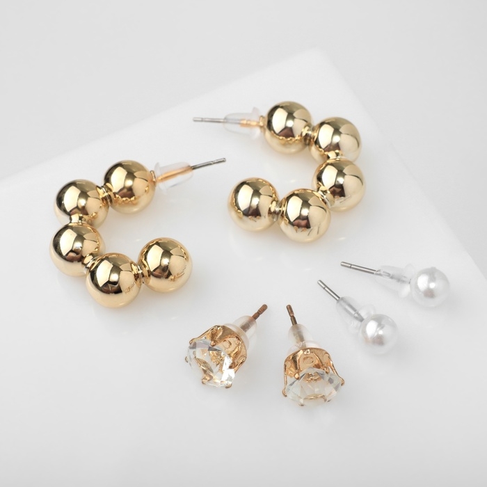 Серьги набор 3 пары «Топ» бьюти, цвет белый в золоте