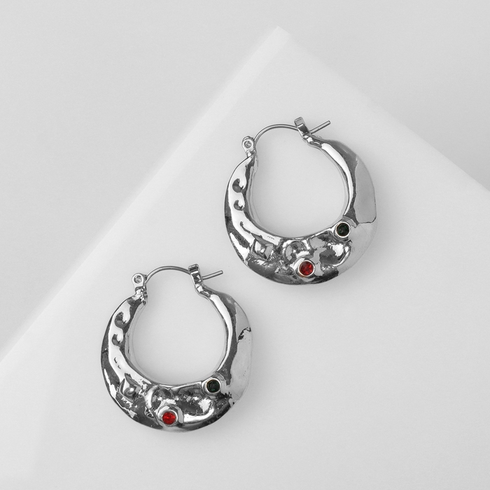 Серьги со стразами «Блеск вечера» граница, цвет красный в серебре
