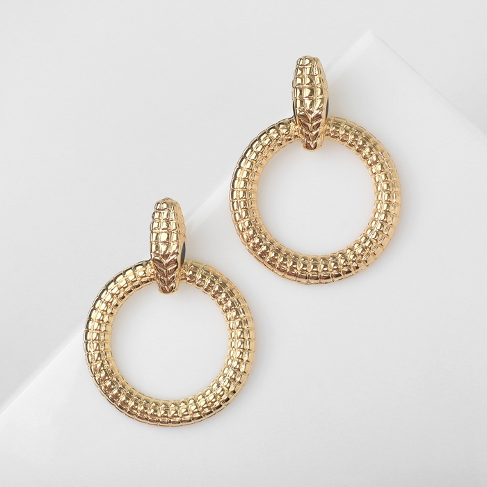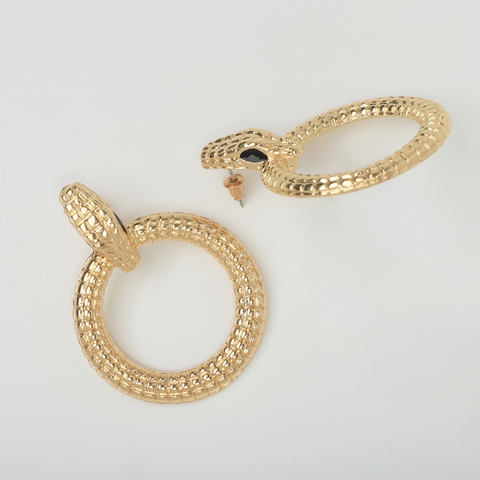 Новый год! Символ года 2025! Серьги со стразами «Змея» кольцо соблазна, цвет белый в золоте
