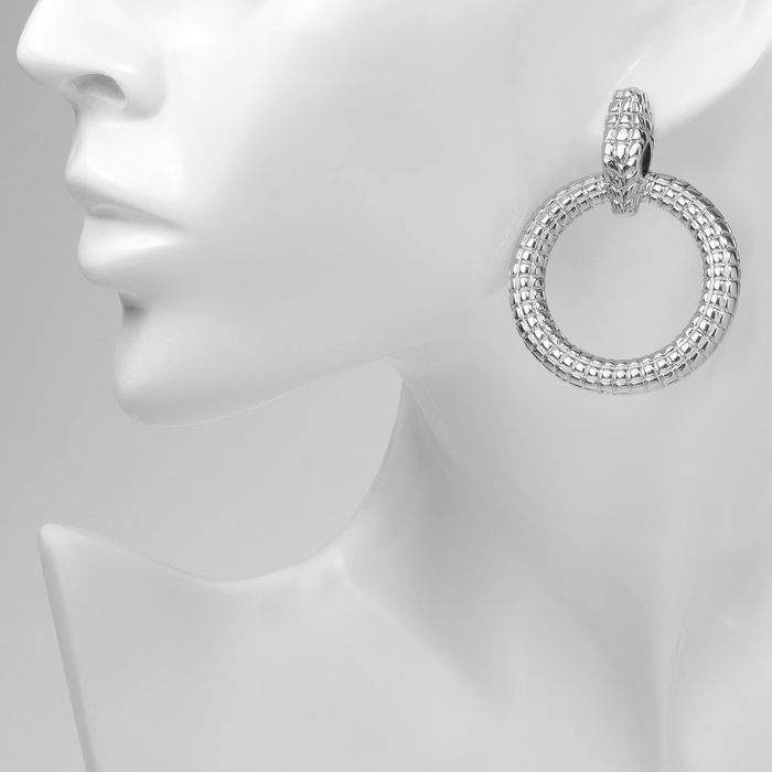 Новый год! Символ года 2025! Серьги со стразами «Змея» кольцо соблазна, цвет чёрный в серебре