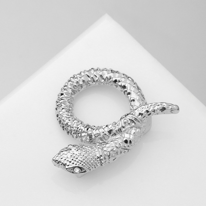 Новый год! Символ года 2025! Брошь «Змея» в клубке, цвет белый в серебре